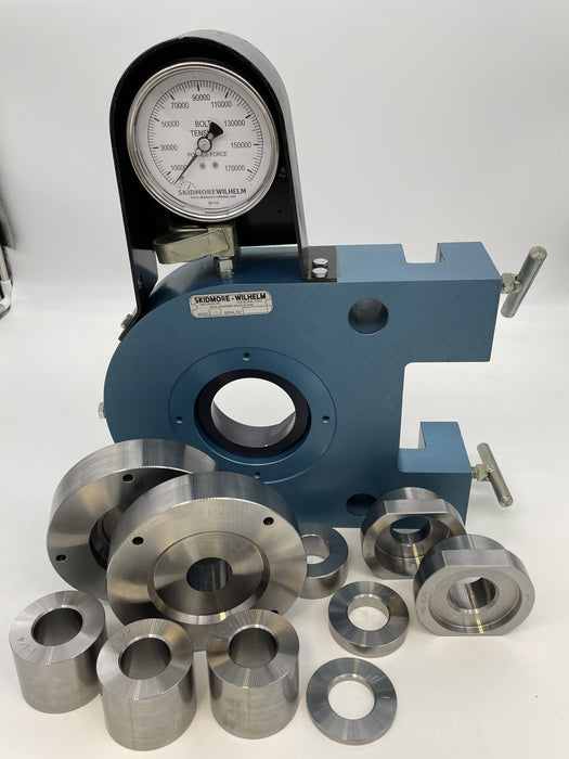 The model HS is available with interchangeable bolt bushing and plate sets for each size bolt to be tested in a complete range through 1-1/2 inch bolt sizes. Adapters can be made for special applications.
